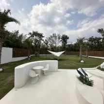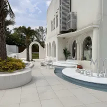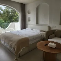 The guesthouse's design is incredibly romantic, and its charming architectural style makes for fantastic photos! The private plunge pool was a particular hit; the kids had an absolute blast splashing around. It's nestled in a rural area surrounded by rice paddies, and a stroll through the fields would have been lovely if the weather hadn't been so hot. The service was also excellent. The only downside was the prevalence of insects, so be sure to pack and apply mosquito repellent liberally.