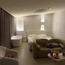 Great hotel, our private pool was very nice to enjoy on a sunny hot day. The room was clean, spacious, the bed was very comfortable. Complementary Chinese style breakfast was good. Very convenient location if you’re planning on going to Disneyland and great location if you just want to move away from the city for a weekend. It is about 50min taxi drive from the city, depends on the traffic. Definitely recommend for couples.