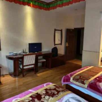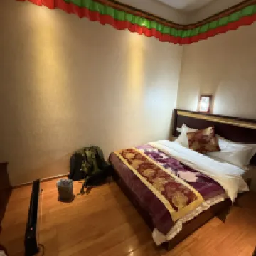 The guesthouse is in a super convenient location with lots of food options nearby. It's just a few minutes' walk from the prayer wheel. The rooms are spacious and clean, and the blackout curtains are such a thoughtful touch. Since I often stay up late for work, these curtains allow me to sleep for several more hours! Also, the owner's flatbread was huge and crispy, bigger than my head, and incredibly delicious!