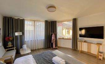 在古城裡,外面有個收費停車場,走到民宿很近2分鐘,去周邊景點很方便。院子裏看着很舒服,房間裏乾淨整潔,這兩天下雨有點冷,還好有電熱毯和電暖氣,老闆想的周到。