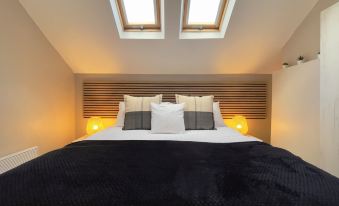 The apartment sleeps up to 4 guests, featuring a spacious sofa bed in the lounge and a bedroom with a large double bed.