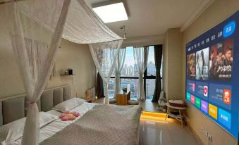 Creamy Style Audio-visual Large Screen Double Bed Room