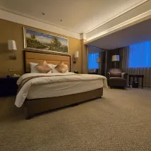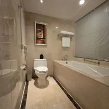 We stayed with our child, and the location was convenient. The service was excellent, truly reflecting 5-star hotel standards: they contacted us before check-in, inquired about our needs, prepared the room in advance, and arranged children's amenities. The room was spotlessly clean. It's truly rare to find a hotel that maintains genuine 5-star cleaning standards, especially when many other star-rated hotels are cutting corners to save on housekeeping costs. The bedding quality was excellent, with all pillows being down — no synthetic or memory foam options in sight. A swimming pool was available.