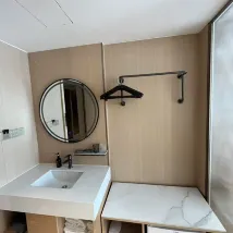 The hotel is incredibly close to the airport, with an airport shuttle service available from 5 AM. The facilities are brand new, and having a wake-up service, gym, and laundry room makes everything super convenient. It’s perfect for air travelers, and the price offers excellent value for money. The hotel's interior design and ambiance are also very refreshing. I’ll definitely choose to stay here again on my next trip to Shenzhen – highly recommended!