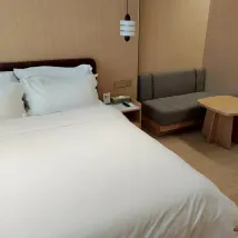 I was truly impressed by the attention to detail at this hotel! The lobby was bright and spotless, with a subtle, pleasant scent, and the hallways were quiet and peaceful. The bed in the room was clean, and the desk and windowsill were absolutely spotless. The bathroom's wet/dry separation was excellent, and the vanity and mirror surfaces were also pristine. The facilities were comprehensive and worked perfectly: hot water was instant and at the ideal temperature, the air conditioning was quiet with precise temperature control, and even the TV picture quality and WiFi speed were top-notch. From the ambiance to the cleanliness and the facilities, every aspect demonstrated thoughtful care. I had a wonderfully comfortable and reassuring stay, making it an absolutely superb value-for-money choice!