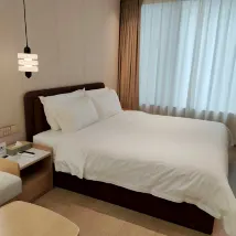 The hotel's location is excellent; it's close to the subway station but tucked away from the main road, ensuring a relatively peaceful stay. The front desk staff were incredibly responsive. For instance, I called to request an extra pair of slippers, and they promptly delivered two pairs to my room. They also went the extra mile to help me locate several packages. Additionally, they offer complimentary airport pick-up and drop-off service, flexibly arranged according to your flight schedule. The room itself was clean and well-maintained. My only minor complaint is that the room's soundproofing could be better.