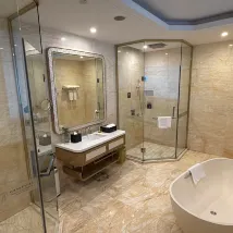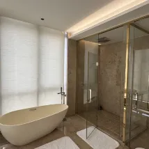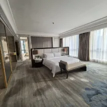 * **Wonderful Ambiance:** Stepping into the lobby, I was immediately captivated by the high-end, elegant, and sophisticated decor. The lighting was perfectly arranged, creating a fantastic atmosphere. The room itself was warmly and comfortably furnished. The bedding was incredibly soft and gentle on the skin, feeling like I was wrapped in clouds the moment I lay down. Plus, with smart curtains, the moment the morning sunlight streamed in was truly rejuvenating!