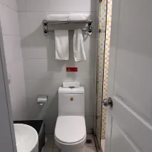 Comments will be made base on my expectation to this type of hotel. I don’t expect luxury facilities or room design or services. The most important is price less than 200 for a double room, hygiene and no bad smelt. Overall the bed, table and chair are clean and tidy. Toilet bowl is ok. However the shower head has much stains on it. It is not because of cleaning problem but a long period of usage. Stains also appears on the wall in the shower room, but not serious. There is a long crack on the wall about 3 feet long. It seems they have repaired it, but appears again. Regarding the air - con. It is cold enough, quit, however, it seems not cleaning every year, much stains on the outlet. The window can be locked but there is a seam here. Lucky is in the past 4 days did not have rain. They use paper cup instead of glass, just environmental problem not cleaning issue.