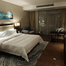 The hotel environment is OK, and the service staff are also nice. However, they don't allow parking in the underground garage, so guests have to go to the open-air parking lot in the rain to pick up their cars!