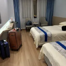 Although the hotel is small, the rooms were surprisingly clean and comfortable. We booked the 'Forest Oxygen Bar Room,' which came equipped with an oxygen machine. Both the bedding and bathroom were spotless, ensuring a very relaxing stay. A Walmart supermarket is just a five-minute walk away, and the area also boasts a variety of local eateries (we recommend Chen Pengpeng Chaoshan Cuisine, Xianggengji Chicken Pot Hotpot, and several snack shops near Walmart). Crucially, Happy Valley theme park is very close, and the walk there is along pleasant, tree-lined paths. As we had a flight to catch, departing at 1 PM, the front desk kindly granted us a late check-out until 2 PM. Their service was exceptionally friendly and helpful. Highly recommended!