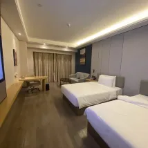 This hotel truly understands its guests! The rooms are equipped with super convenient USB fast-charging ports, and the 100% blackout curtains ensured I had a deep, restful sleep. Free luggage storage is also available, which truly elevated my travel experience! What a pleasant surprise! The lobby offers complimentary tea and snacks. The in-room air conditioning was remarkably quiet, and the non-slip mat in the bathroom was a thoughtful touch. They even gave a small souvenir upon check-out – such attention to detail truly won me over! The room was more spacious than the pictures suggested, and the bedding was soft and breathable, preventing any stuffiness. The Wi-Fi was strong enough for seamless video streaming. The freshly cooked noodles at breakfast were incredibly flavorful, and the staff, especially Xi Yin, had a very kind and gentle demeanor.