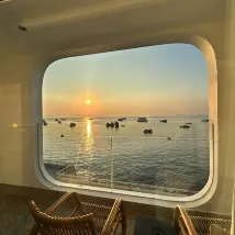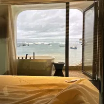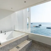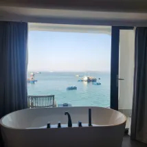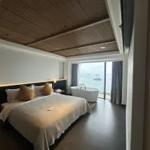 The button-controlled smart room made adjusting the lighting, curtains, and temperature effortless. The bathtub with an ocean view was the highlight—soaking while listening to music from the built-in panel was pure relaxation. Plus, the ceiling projector turned the room into a private cinema, perfect for unwinding at night.
