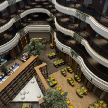 The hotel gave us a free upgrade to a sea-view king room, directly facing Dameisha Beach. Inside, the hotel has an indoor atrium, with the lobby right in the middle, which also serves as the breakfast area. We might have gone a bit late, as a lot of the food was already cold. There are convenience stores and bubble tea shops right outside, and it's quite close to the subway station.