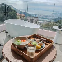 It was such a pleasant stay at Miyue Tianlu. We picked room201 which gives you access to an outdoor bathtub, tanning area with amazing sea and forest view. You also get to see the cable cars going up and down the mountains.