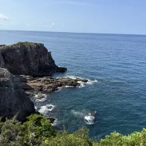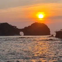 Right by Senjojiki Cliffs, offering beautiful sunsets and an onsen. Breakfast was decent.