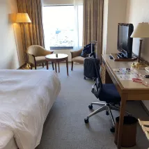 We were upgraded to a corner room with a beautiful view. 2 bottles of water were given to us every day. The staff was so courteous, polite & friendly. Hotel was located right across the street from the train station, where there were so many places to eat and shop. It was a very enjoyable stay.