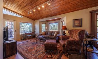 This one-of-a-kind cabin (Haflinger House) not only offers the availability of a two-bedroom rental, but a large private corral May thru October with a 12' x 24' run-in to accommodate 2 horses (Horse Boarding Fees are in addition to VRBO fees - call for current rates). Haflinger House is part of the Torreon Equestrian Center and offers full access to their amenities and trail access to the Tracks Trail System in the beautiful Sitgreaves National Forest. You will find our cabin offers all the necessary amenities to make your stay relaxing and enjoyable. Dogs welcome. Horse Boarding fees are billed through the Torreon Equestrian Center (Torreonequestrian.com)About pets:Pets allowed: dogs (limit 2 total).2 dog crates, one large and one small provided.About checkOut:Check out before 11:00 AM.About children:Children allowed: ages 0-17.About checkIn:Check in after 4:00 PM.About smoking:Smoking is not permitted.About minBookingAge:Minimum age to rent: 21.About events:No events allowed.