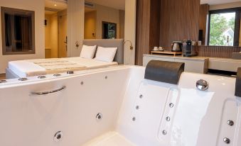 Make yourself at home in one of the 8 air-conditioned rooms featuring indoor private hot tubs and heated floors. Rooms have private balconies. 40-inch Smart televisions with digital programming provide entertainment, while complimentary wireless internet access keeps you connected. Private bathrooms with separate bathtubs and showers feature jetted bathtubs and hair dryers.