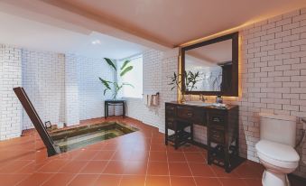 Booked for the anniversary. The hotel upgraded the room to a suite and provided a free wine for our stay. Probably due to the inconvenient, not many guests there and the pool in the room is dirty, there are leaves dropping into the pool. They took some time to clean up.