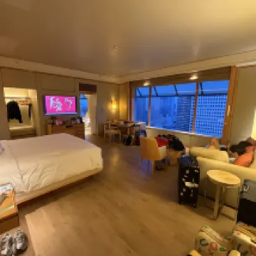 The room was quite spacious, and the complimentary children's toiletries were a nice touch. The octagonal bay window with the bathtub was absolutely beautiful. They also had a fun 'kids' check-in' activity where children received free ice cream. However, it was a bit disappointing that the kids' play area wasn't open every day, so we didn't get to experience it. Room service was a little slow, but the lobby staff were incredibly helpful. When we wanted to go to Ya Kun Kaya Toast, a staff member actually walked us all the way to the restaurant.