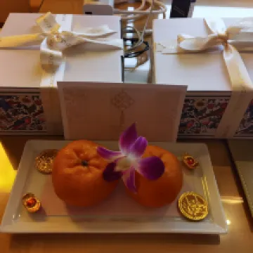 Overall, it was a good stay. The greeter was very polite and proactively took our luggage the moment we got out of the car, so we didn't have to carry it ourselves. After checking in, we waited over an hour because the room was being cleaned. Once we got to the room, there was a plastic wrapper left by the previous guest on the floor, which was very disappointing. We contacted the front desk and they changed our room. Everything else was fine; the view was excellent, and breakfast was abundant. The chef making noodles was very professional. Perhaps it was because we changed rooms, but when we returned in the afternoon, there was a beautiful oil painting-style cake delivered to our room.