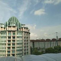 Hotel Michael is one of the several hotels within the resort. They are all walking distance from each other and from Universal Studios. This tends to be the cheapest among the other Resorts World.