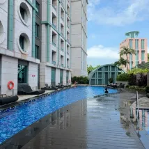 Convenient location, and the infinity pool was amazing! We happened to be there for Singapore's 60th anniversary, so we got to see the air show from the pool – it was spectacular. Enjoyed a beer with my kids, leaning by the edge and taking in the panoramic views. Absolutely beautiful!