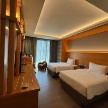 The room was nice, with an old-school resort vibe. The minibar was complimentary, and we even got a free extra hour for late check-out. They also helped us with water park tickets. Both the front desk and concierge staff were very friendly. Breakfast was a bit of a walk, but there were plenty of options and the food tasted good.