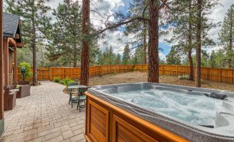 Sisters Tree View is a beautiful, upscale home with an ideal location in the charming town of Sisters. This stunning home features an open floor plan with vaulted ceilings, wonderful wood finishes throughout, and a spacious kitchen with natural edge granite countertops and stainless steel appliances. After days spent exploring Sisters, you can come home to relax on the patio, run around with your dog in the enclosed yard, and indulge in a relaxing soak in the private hot tub.