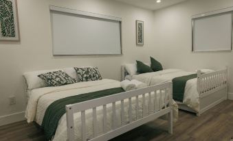 3 bedrooms: 1 single bed 2 queen beds and 2 double beds