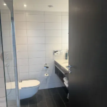 The room was on the smaller side, but it was spotless and very well-kept. I particularly liked its minimalist, 'Instagrammable' decor. Customer service was fantastic, dealing with issues incredibly efficiently – definitely a big thumbs up! 🌟 The only drawback is its location, quite a distance from Zurich city center, which means about a 45-minute commute by public transport.