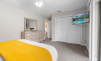 The entire home is yours during your stay, except for two locked closets reserved for maintenance and owner use. You’re welcome to park in the garage to keep your car out of the Florida sun, but please refrain from parking on the grass, as we have sprinklers.