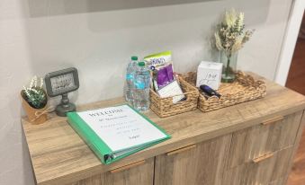 There are two bathrooms with a tub/shower combo. A hair dryer is located in the South bathroom. A first aid kit is located in the North bathroom.