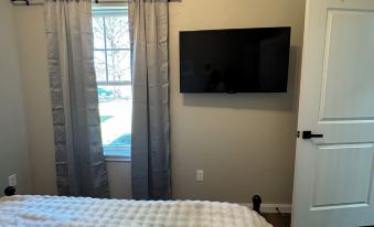Two bedrooms have queen beds and spacious closets. A third bedroom offers a bunk bed with an additional twin trundle for extra usage. Each bedroom has a smart TV. The master bedroom has an iron if your clothes need ironed, and an ironing board is available next to the washer/dryer.