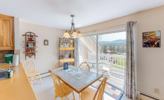 Kick back in comfort and luxury when you book this lovely home featuring on-site amenities that include a shared pool and hot tub and even a shared tennis court! Inside, you'll find a spacious living area dressed with comfortable furniture and attractive wall art. The electric fireplace is a great way to bring some atmosphere to tonight's dinner party, and you'll have a blast preparing your home-cooked meal in the well-equipped kitchen. Use the appliances, counter space, and cookware to turn out your creativity, then let the dishwasher take care of those dirty dishes while you serve your guests at the adorable dining table. On summer evenings, you can even take your meals al fresco out on the private deck while the wind rustles through the trees. The primary bedroom features a queen and a twin rollaway and the guest room has a queen bed, offering space for up to five guests. When you're not out hiking the many nearby trails, stretch out on the living room sofa to enjoy a good DVD or Blu-ray movie on the large flatscreen TV with lots of buttered popcorn and good friends.