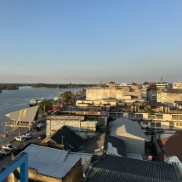An excellent hostel in the heart of the city. It's a 15-minute walk from the bus station and a five-minute walk from the port. The river is nearby. The hostel provides clean linens, a locker, and a power outlet. On the sixth floor, there's a viewing lounge with chairs. Great views of the river, the city, and the sunset.
