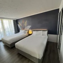 Steer clear of the Deluxe Two Double Beds room. This room type is situated on lower floors, right next to the building's ventilation units (see last photo), which makes it quite noisy. Even with doors and windows closed, the soundproofing, while decent, doesn't entirely block out the noise. City view and sea view rooms are on higher floors and are often just a couple of RMB more expensive, making them a much better option. The room was clean, but the amenities are a bit dated; for instance, the safe makes a very loud noise when operated, and the bathtub drains very slowly. Nevertheless, the value for money is excellent. Breakfast was good, and the staff were all very friendly and enthusiastic. Overall, it's a decent choice.