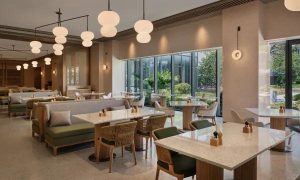 We stayed at the Marriott for two days during the Chinese New Year holiday to visit Peninsula Park. I chose it right away because it's a well-known brand I trust. The hotel environment is lovely, with fresh air, and our room overlooked a lake not far away. I particularly enjoyed the moon and jade rabbit themed decorations on the lawn.