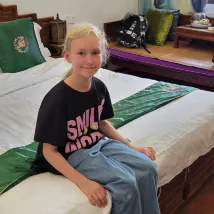 A wonderful hotel. The building and rooms are very colorful and maintain a traditional style, which was an important selection criterion for me. Initially, we booked the cheapest room, but the owner of the hotel changed our room to a more spacious one. I was traveling with my daughter, and in the spacious room on the second floor we were able to comfortably accommodate and unpack all our things. The room also has a separate bathroom with a window. Thanks to the powerful air conditioner, the room was comfortable, while the outside temperature reached 38C. The room also had a TV and a refrigerator. The bed is wide, and the bed linen is clean.