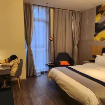 Hotel is very close to the subway station and quite close to the attractions. There are very nice local places to eat around the hotel and also western food available at the subway station. Luckin Coffee is about 150m from the hotel as well. The front desk is very helpful and friendly. The only reason for not giving them a 5 star is because our room was not cleaned properly when the previous guests left.