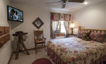 The kitchen is well-equipped and there are two dining tables – inside and outside. The back patio has a charcoal grill, perfect for preparing the "catch of the day." The bedroom on the main floor has a queen-sized bed and a bath with claw-foot tub/shower.