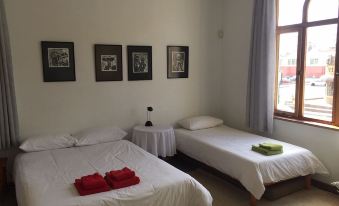 2 bedrooms: 1 single bed 1 queen bed and 1 double bed