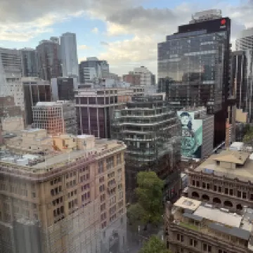The hotel boasts an excellent location in the heart of the city, making transportation incredibly convenient. The tram stop is right outside the door, and the historic Martin Place, over a century old, is just steps away. The hotel offers a wide variety of dining options, and the rooms are well-equipped with luxurious decor.