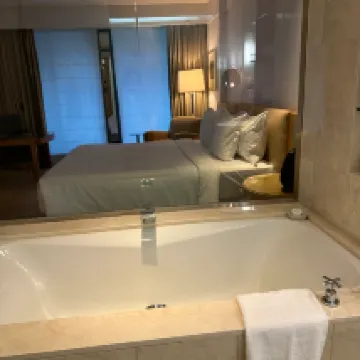 When I booked, I wondered why this five-star hotel was so much cheaper than others in the CBD that day. Turns out there's a catch, definitely don't stay here. I pressed the 'do not disturb' button, but at 10 AM, housekeeping still knocked on my door. My bed was far from the door, so I didn't hear it clearly. By the time I realized someone was knocking, housekeeping had already pushed the door open while I was still in bed. How incredibly unprofessional! Couldn't housekeeping see the 'do not disturb' light? Standard check-out is 11 AM. Did I say I was checking out at 10 AM? To rush guests out at 10 AM? Extremely unprofessional and left me with serious psychological discomfort. The front desk only offered a 'sorry' and nothing else. I stayed here once three years ago and had a good impression, but this time the facilities are much older, unpleasantly so. The bedding was rough and uncomfortable, and the shower water would suddenly get scalding hot.