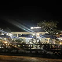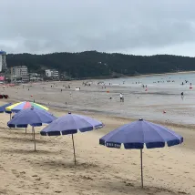 It is not far from the lively side of the beach maybe a 5 minutes walk from the hotel. The closes convenience store is about a 5 minutes walk. A few minutes walk to Chollipo beach and the garden there.