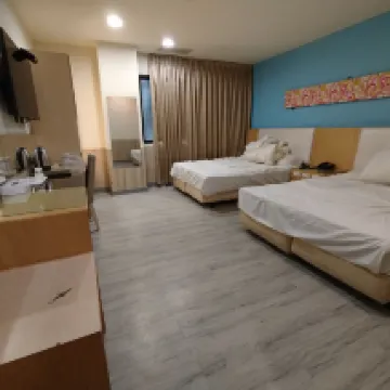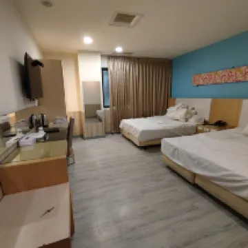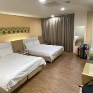 This hotel offers great value for money. We stayed in a quad room on a weekday, and choosing the breakfast-included option was definitely worth it. Although it's an older building that's been renovated, the environment is clean, and the room is very spacious. The bed is a bit soft, but it's actually quite comfortable once you lie down. The room also has a refrigerator and a water dispenser, plus complimentary bottled water. In the evening, it's about a 15-minute walk to Yizhong Street Night Market, which is super convenient for trying out Taichung's local cuisine for dinner. The hotel only has 5 parking spaces, but the front desk provides information for a discounted affiliated parking lot for $150. We were also able to get a discount for street parking. The breakfast was simple yet delicious, with a mix of Chinese and Western options. My child said the white rice with braised pork, pork floss, and peanuts tasted like sticky rice cake. We would definitely be willing to stay here again if we visit Taichung in the future.