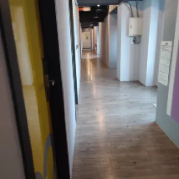 The hostel is near the train station. The entrance is on the 10th floor of the commercial building. The underground appearance of the commercial building is a bit dilapidated. Fortunately, the interior of the hostel is newly renovated.