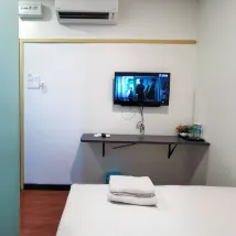 We Not happy for the room and arrangement. We online booked is family room can max. 4 adults (1 double bed and 2 single beds room) and available. When we check in, that day the counter said is not family room and arranged 2 room to us (2 rooms is double bed). Also we get 1 room (203) the door access is not function well.