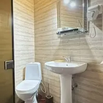 We moved to a room on the first floor next to the reception. The room is better, more space, there is an entrance area. It is tidier. The bathroom does not have a shower wall, and there is no curtain either. If you swim, it splashes in all directions. Be prepared to swim. The pressure in the shower feels like it cuts your skin. The stream of water does not flow straight, but in different directions.