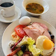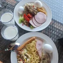 А теперь пожелания (это для того чтоб они стали еще лучше). Очень хотелось бы видеть информацию о завтраках не только мелким шрифтом на конвертике отеля и крупно в лифте, а так же в информационном листе который лежит рядом с телефоном, там же хотелось видеть (телефонный номер ресторана есть) где находится ресторан, время его работы и меню. Далее если есть балкон, почему бы не поставить туда пластиковый стульчик (Это не дорого, но очень удобно. Стульчик можно оставлять в номере - клиент догадается для чего он нужен.).
